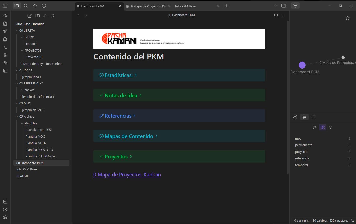 - En el siguiente enlace: Info PKM Base, encontrará información detallada de la estructura de archivos/ficheros y flujo de trabajo de este entorno base de PKM.